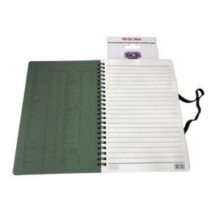 Save your thoughts, notes and plans wherever you are with this handy waterproof and tear-resistant A5 notebook. Repelling mud, oil and outdoor dirt, this book has 50 pages lined with waterproof elastic closing bands.