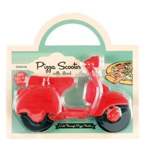 This fun pizza cutter, shaped like a retro scooter, will slice through pizza with ease! It is made from plastic with non-stick metal wheels and would make a great addition to a pizza lover's pantry.