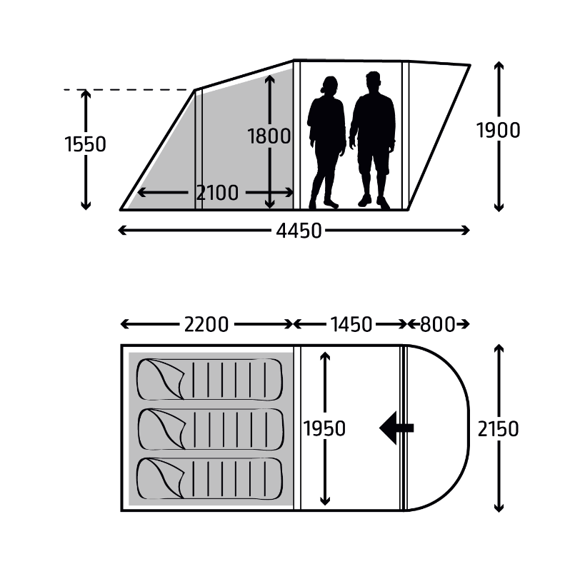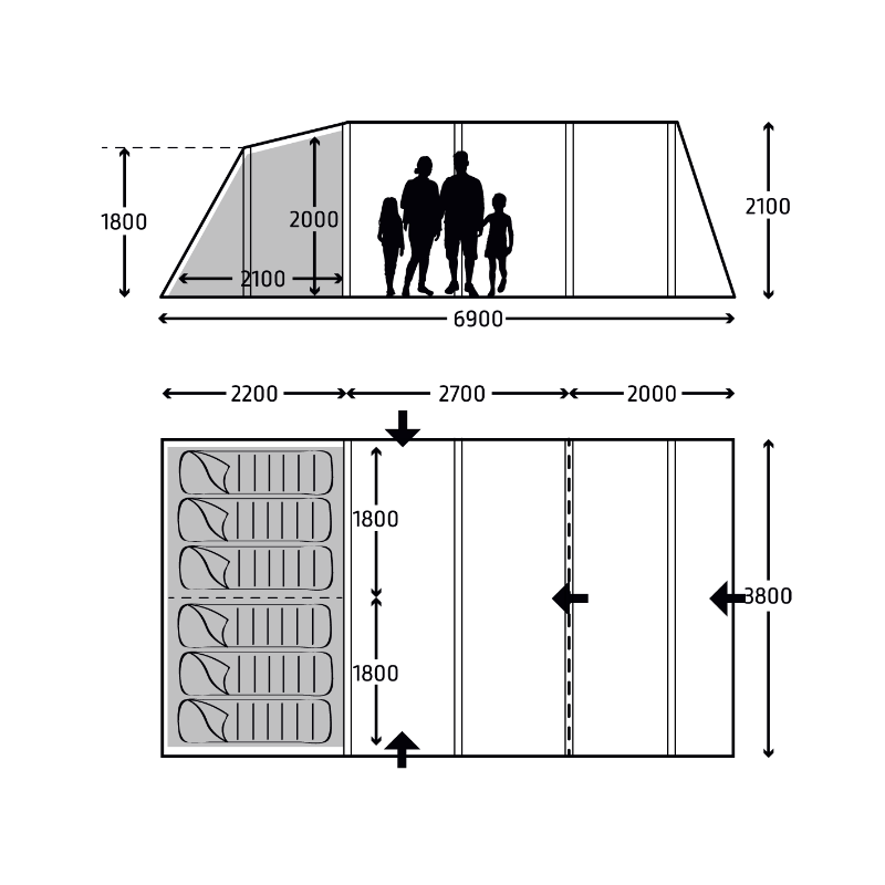Other top features include; standard 210cm bedrooms, darker fabric in bedrooms to reduce morning light, fully sewn in groundsheet keeping bugs at bay and conveniently positioned pockets for storing essentials.