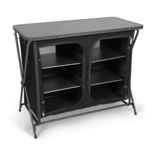 The Kampa Zara Cupboard offers handy storage for food, clothing, and all essential camping equipment. It has six external shelves, all aluminium-edged for ultimate strength, rear mesh-protected ventilation, and accessory pockets.